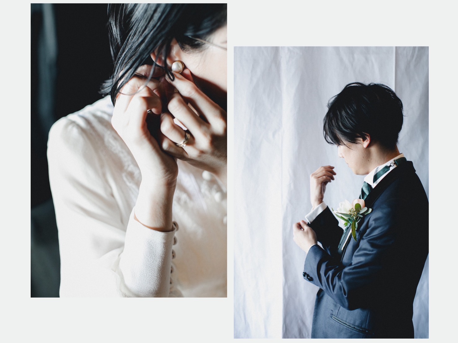 穏やかなおふたりによく似合う、柔らかな色合いのコーディネートです。