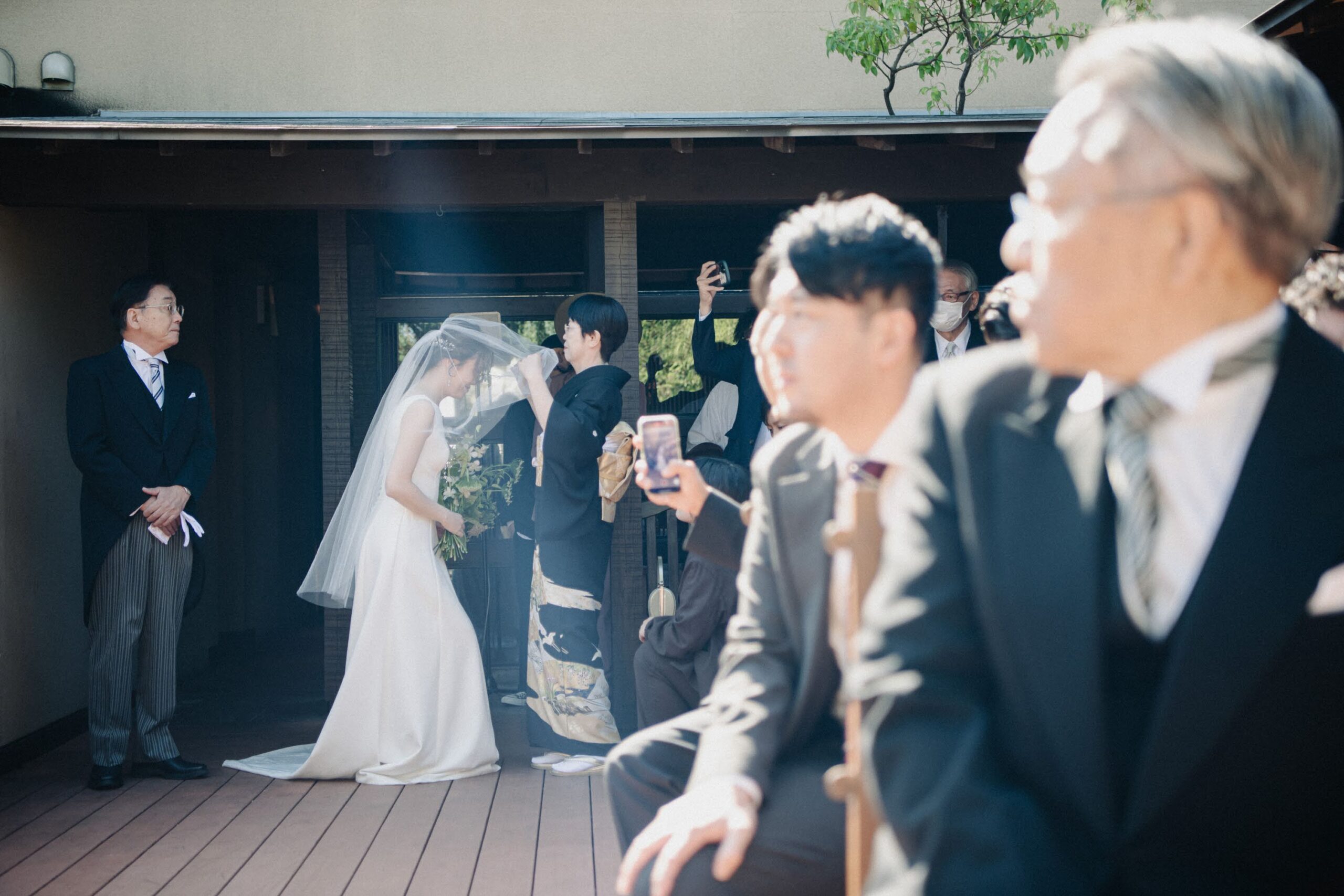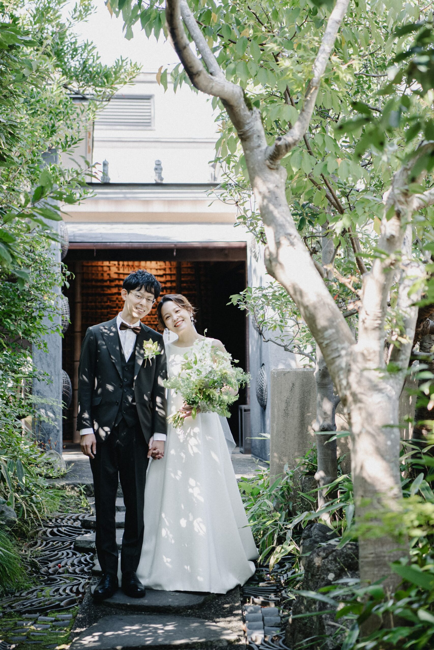 柔らかな木漏れ日が差し込むエントランスでお写真をお撮りして、