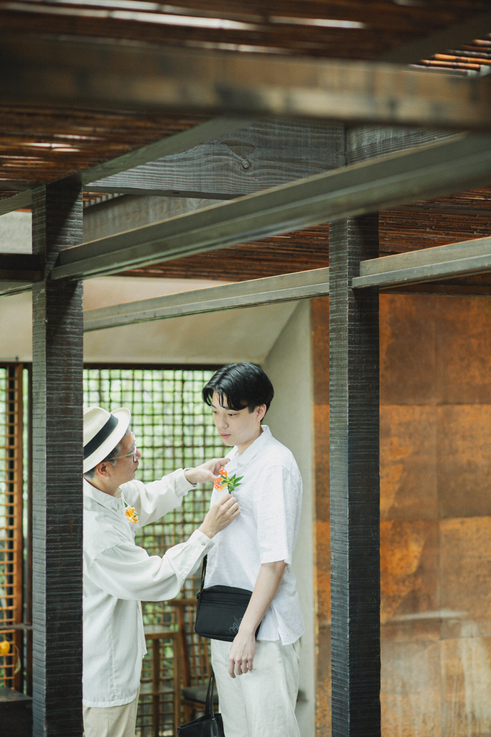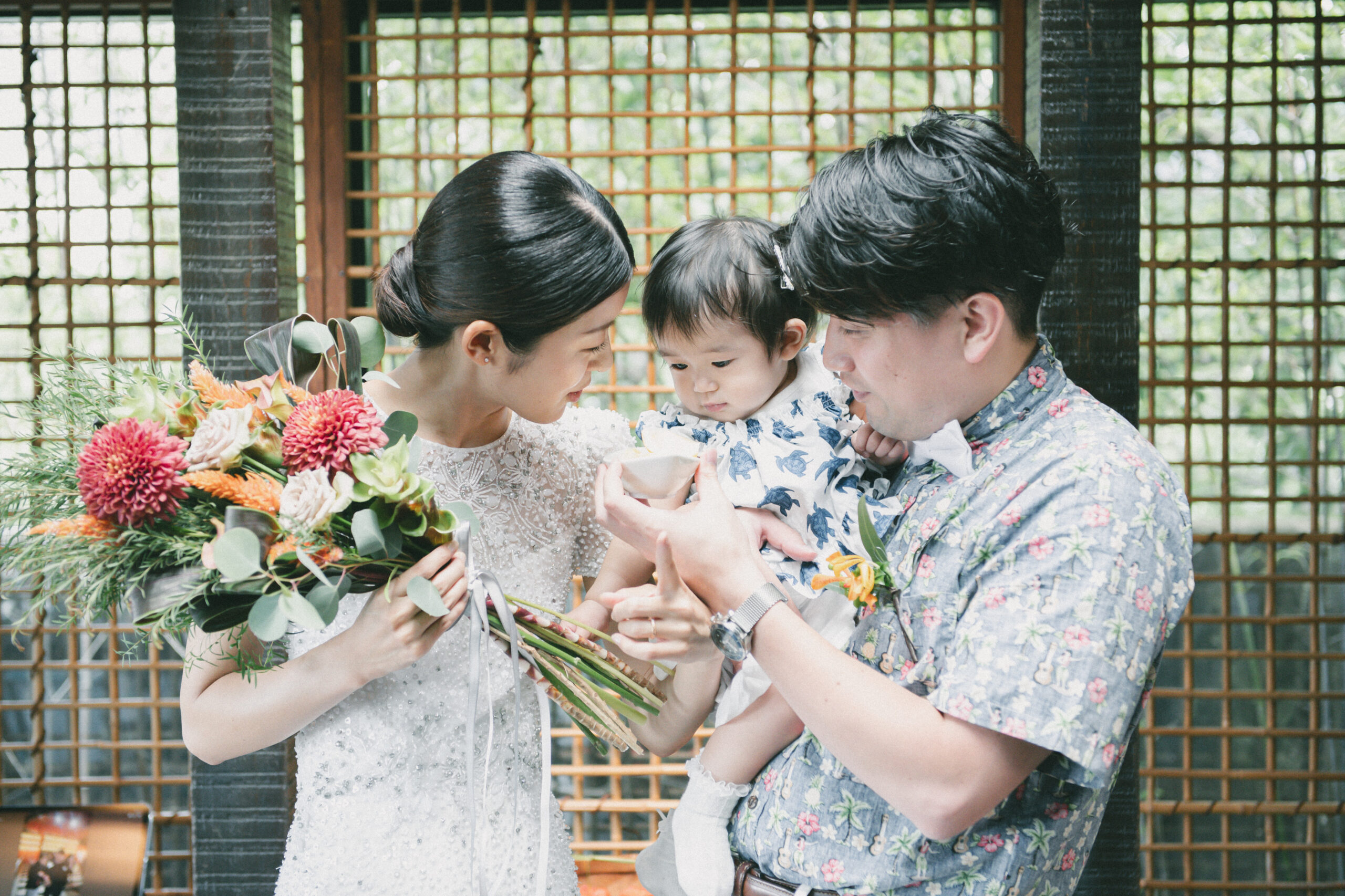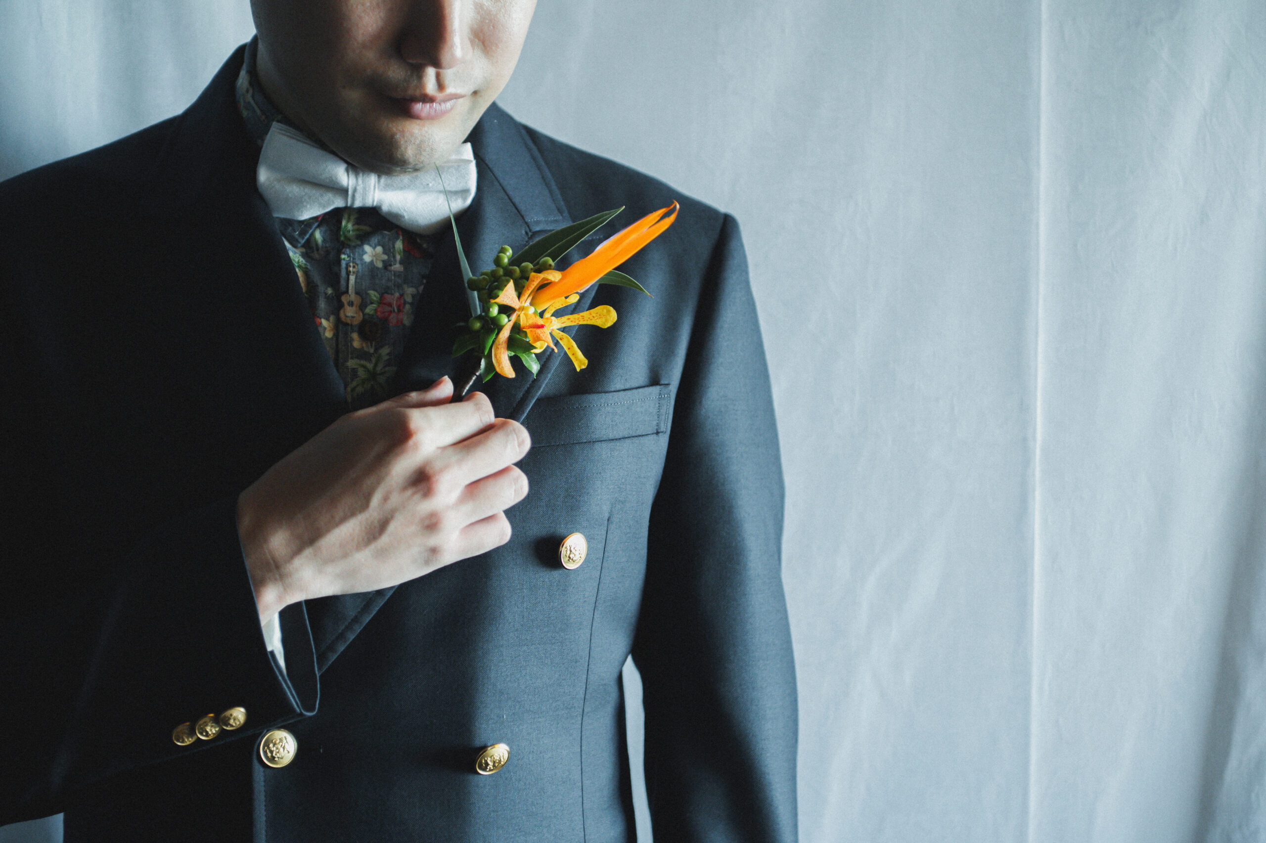 新郎様は中にアロハシャツを着て。