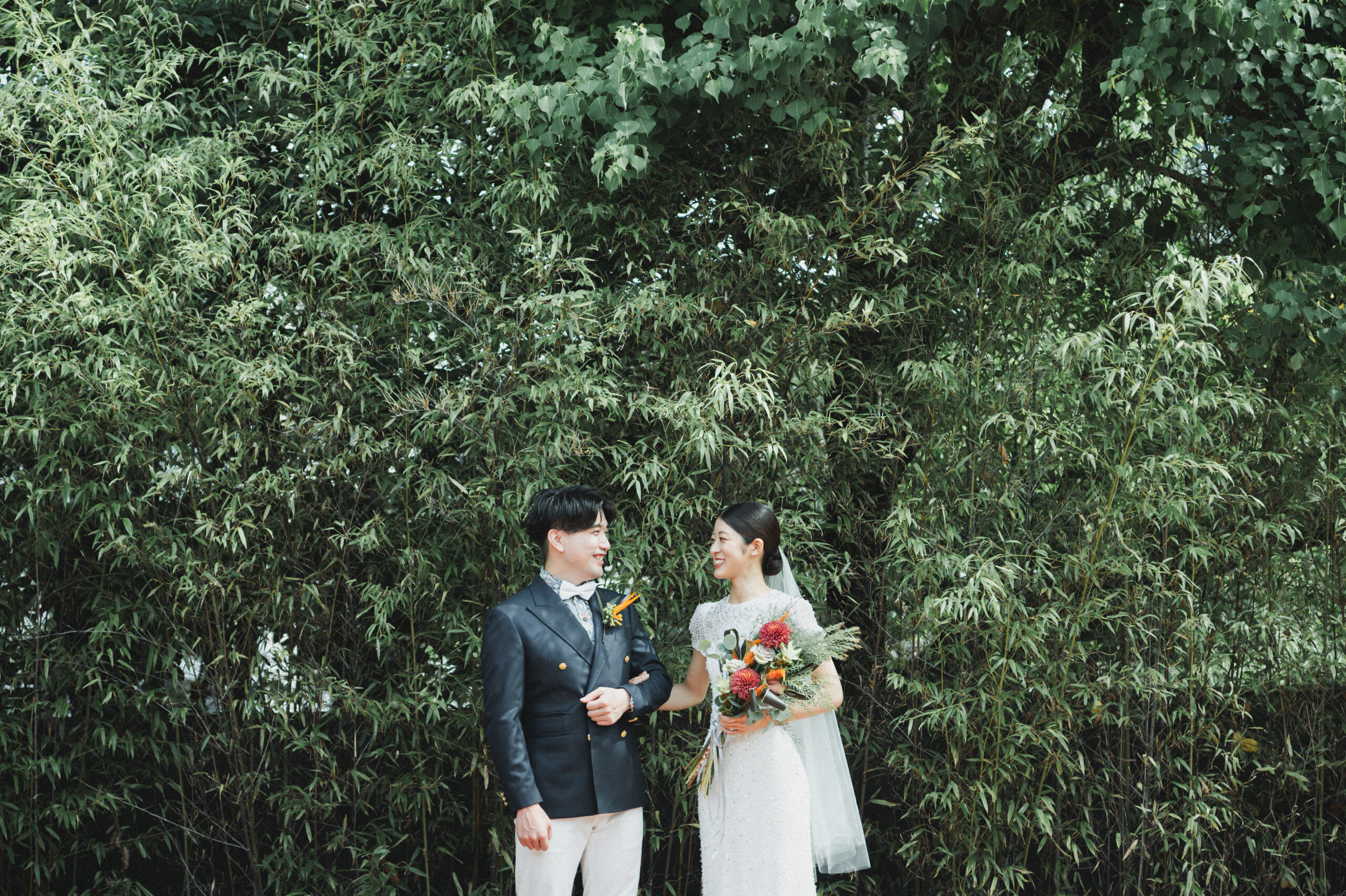 ご自前のスーツとJUNOのウェディングドレス