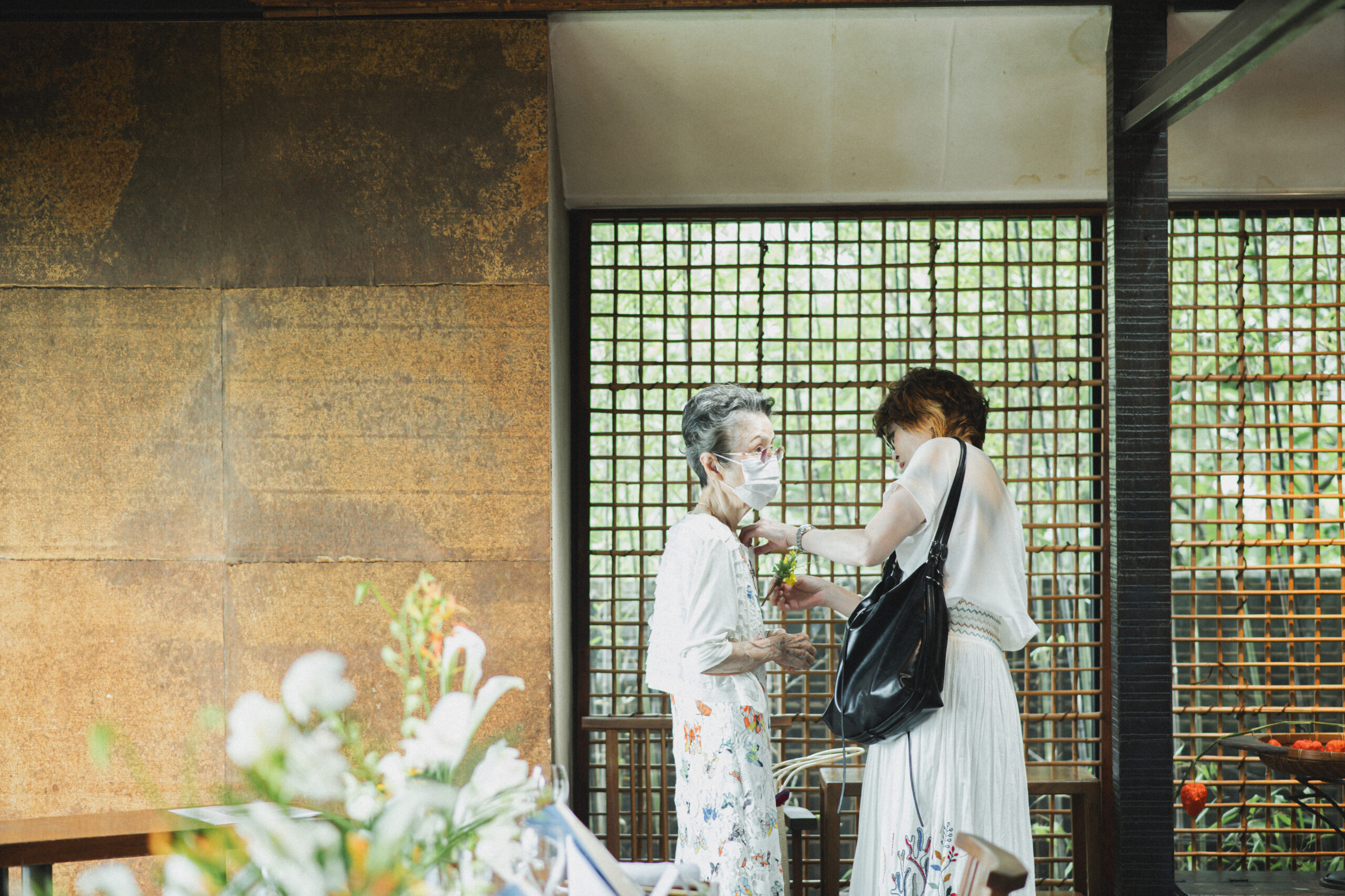 以前お花屋さんにお勤めだったという新婦様のお母様。