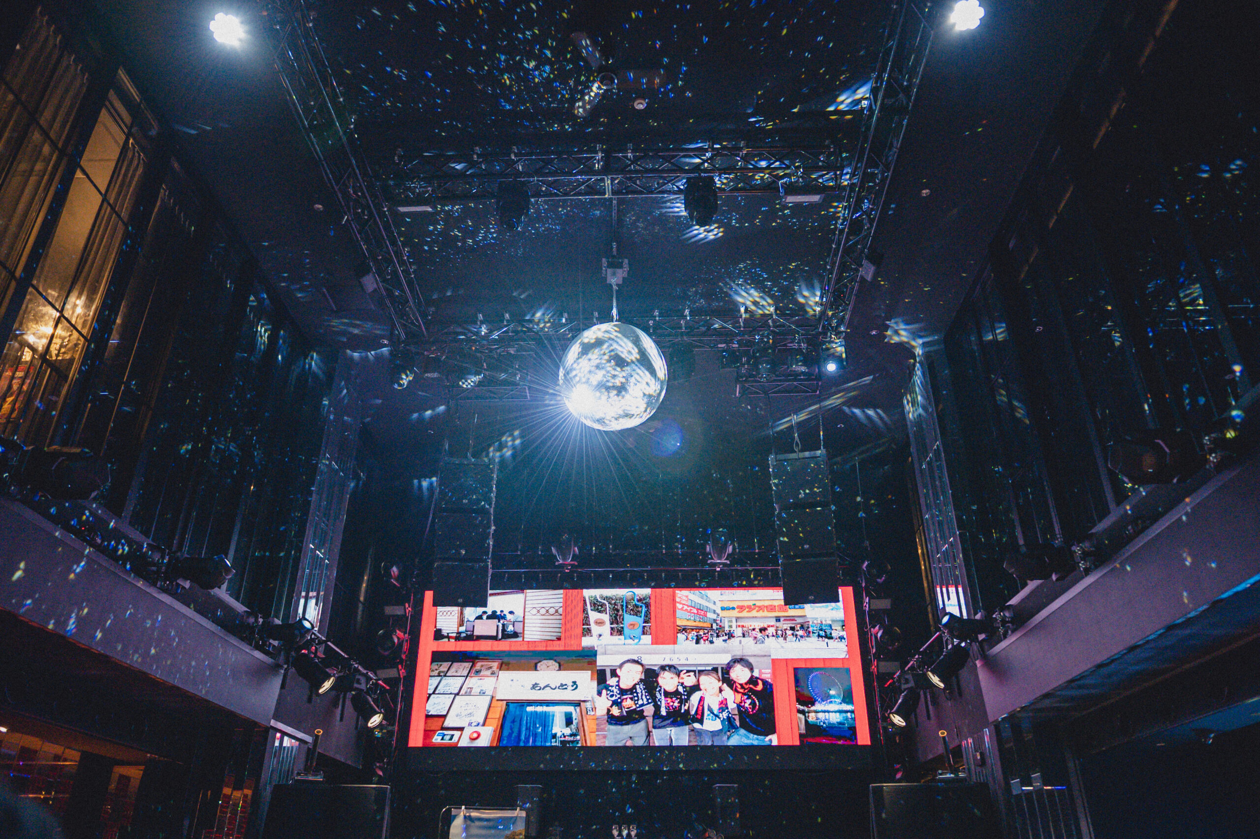 大きなミラーボールが目を引くこちらの会場は