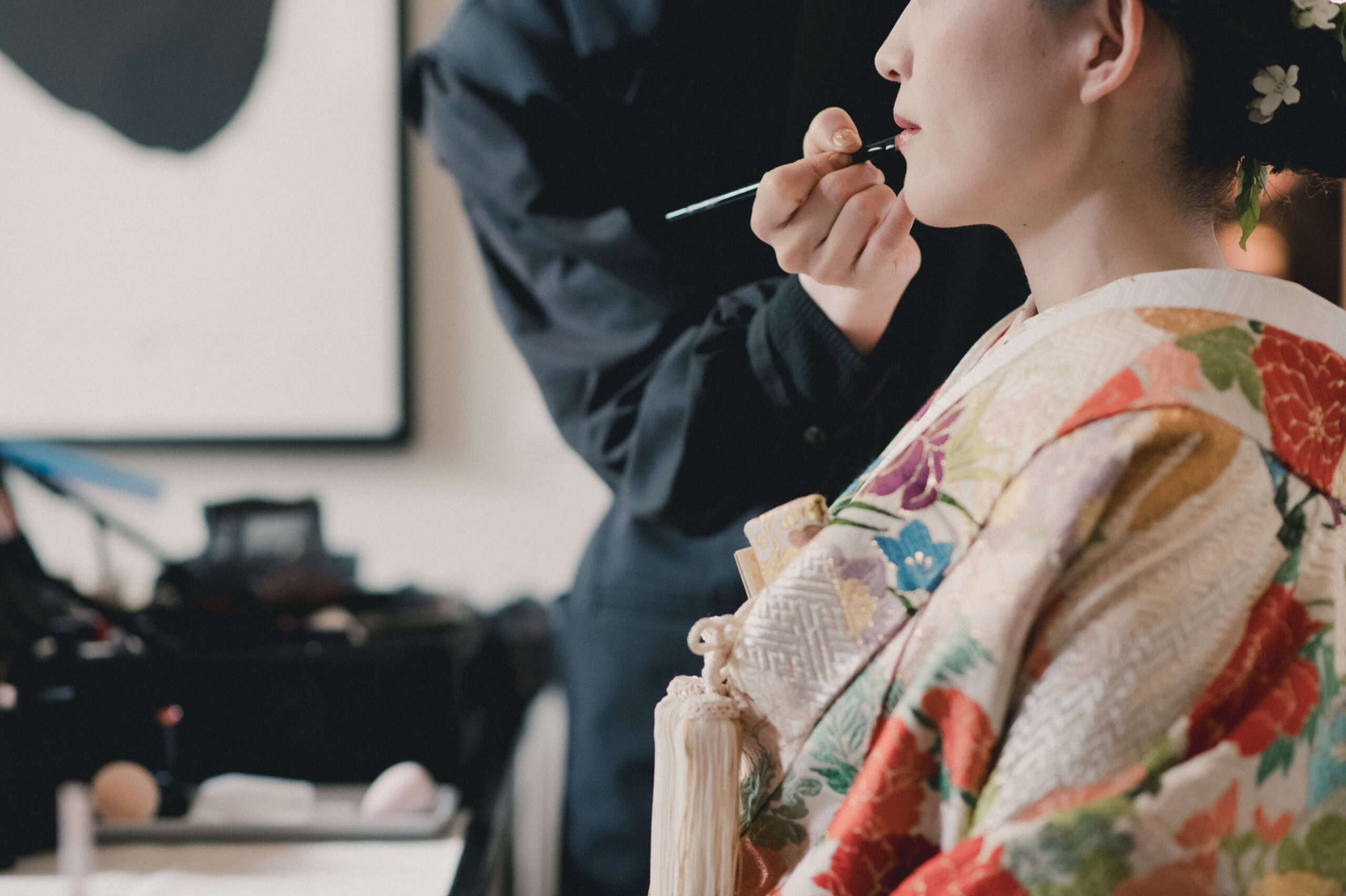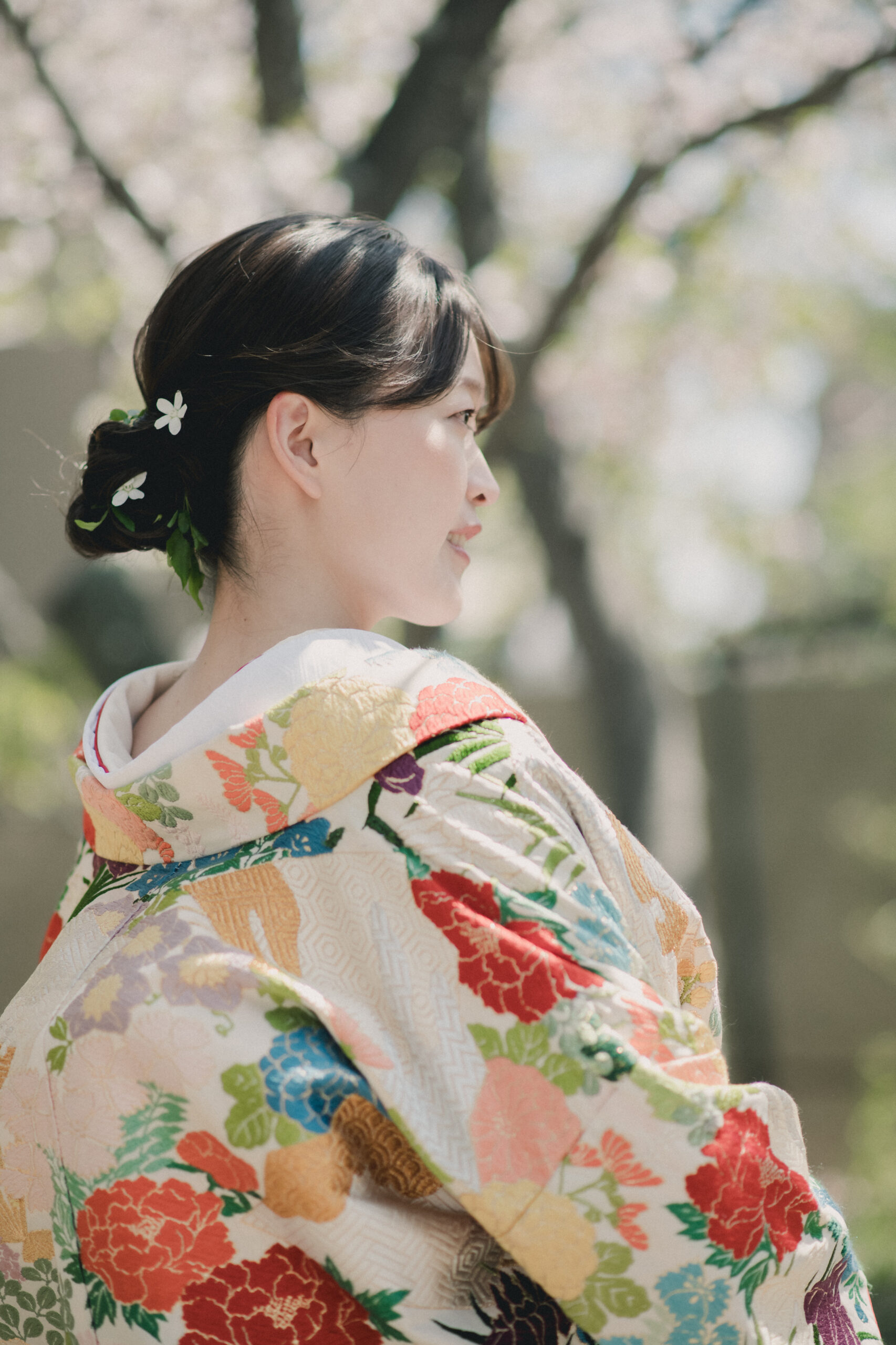 春の晴れ空に似合う 鮮やかな色打掛に身を包みます