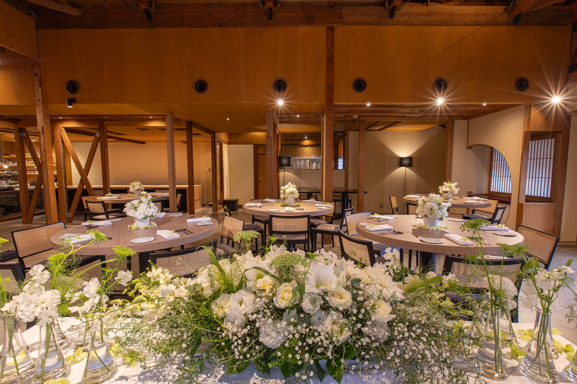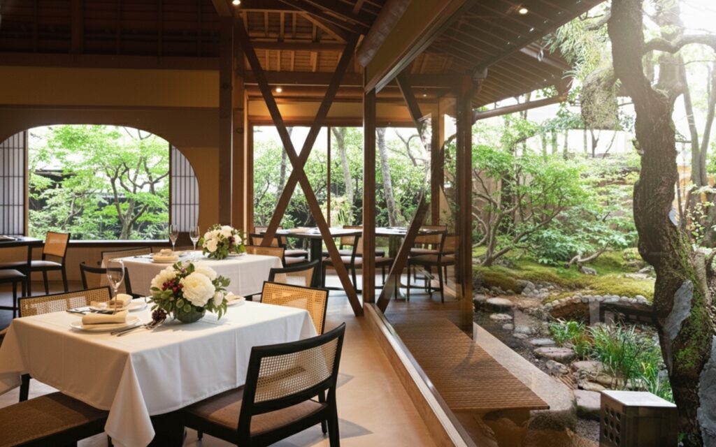 壁や天井、間仕切りを取り払い、豊かな庭園から注ぐ自然光が陰影を作り出し、日本の繊細な美意識と季節の移りを感じる空間へと生まれ変わりました。