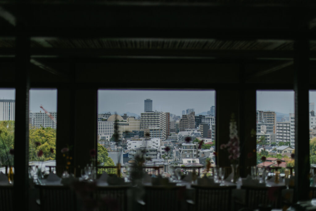 ゲストの温かな気持ちを代弁するような、大きな窓から陽光が差し込む明るいバンケット。窓からは福岡の街の眺望が広がり、開放的な気分の中で大切な一日をお過ごしいただけます。