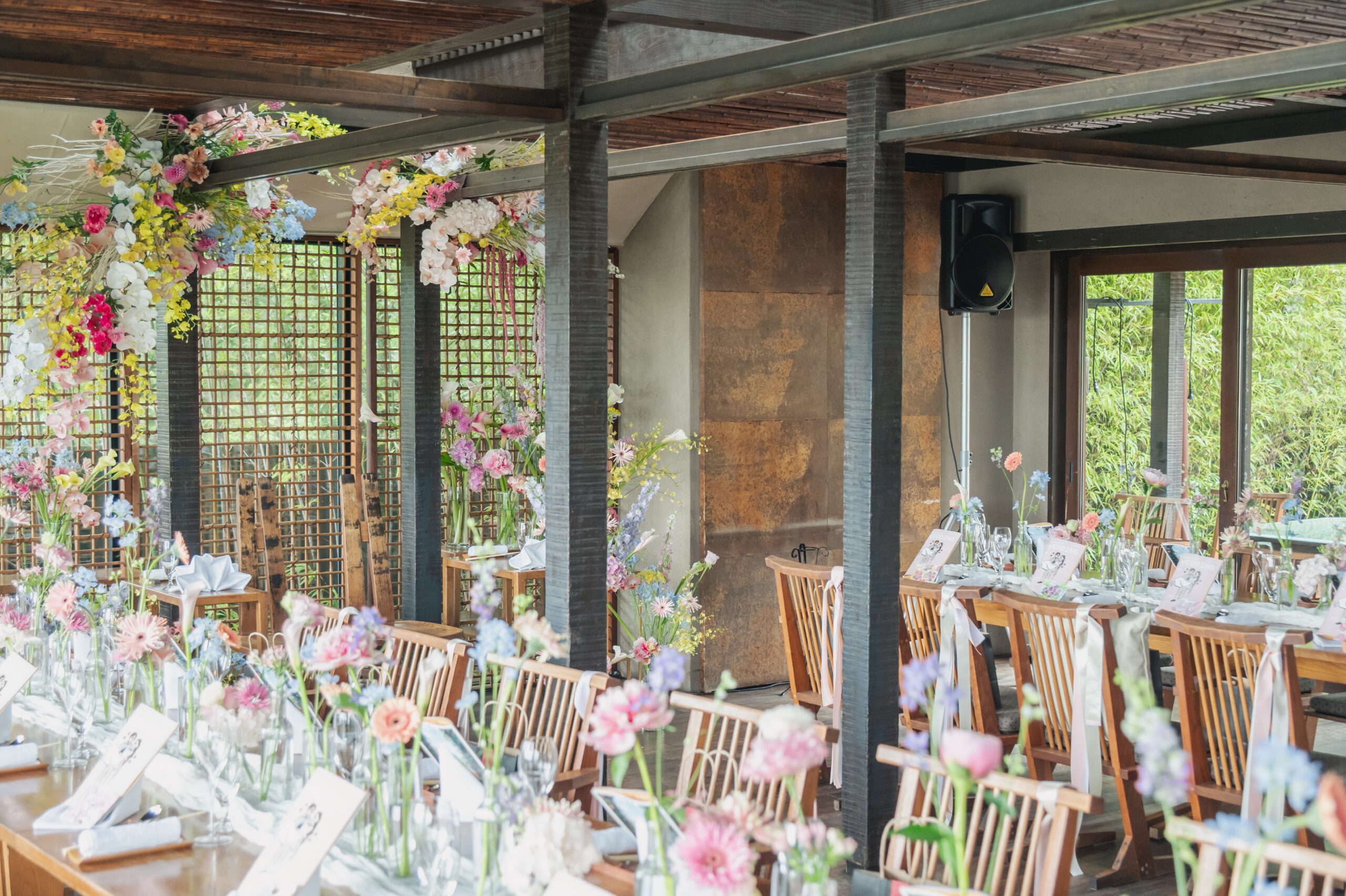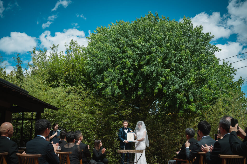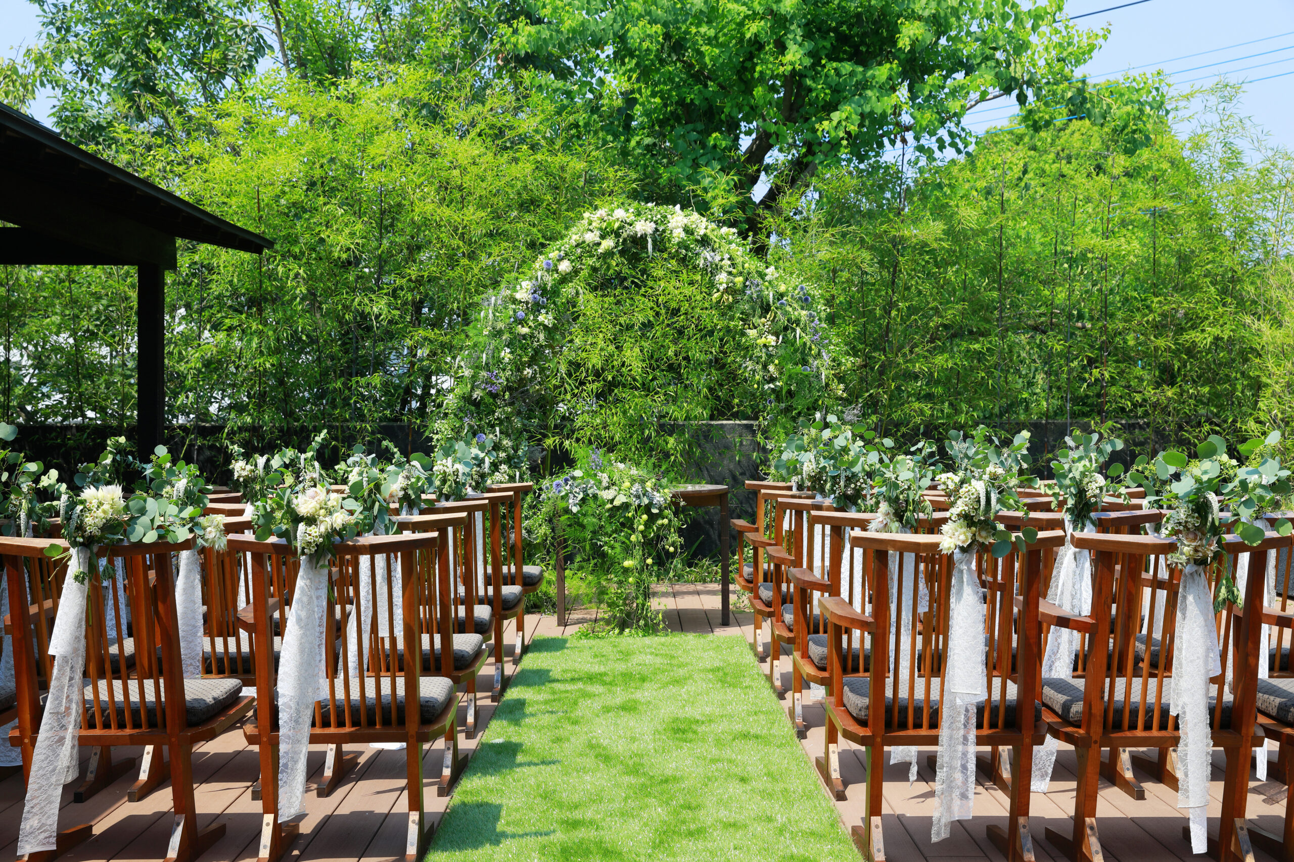 メインバンケットに隣接する中庭で、柔らかな日差しと緑に囲まれて人前式を。太陽の下、ゲストに祝福されて誓われるふたりの愛は、永遠のものとなることでしょう。
