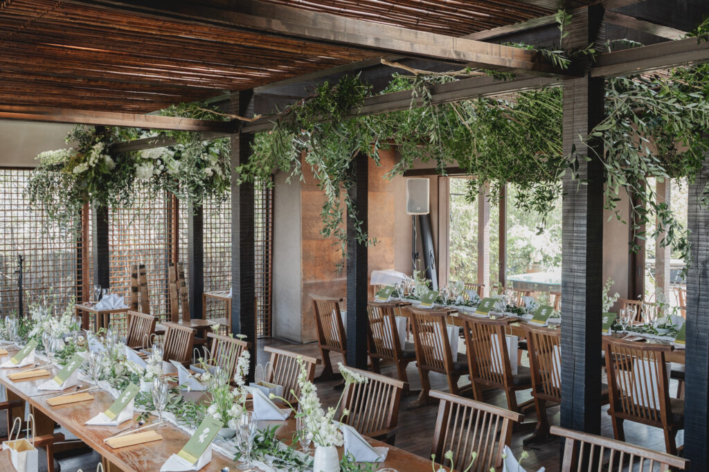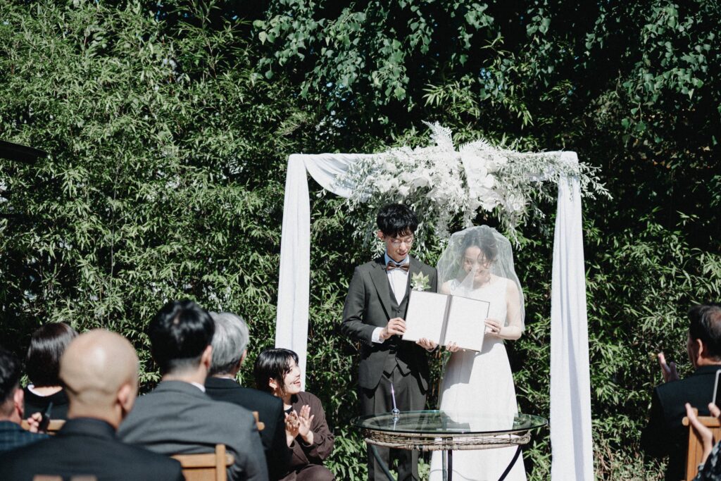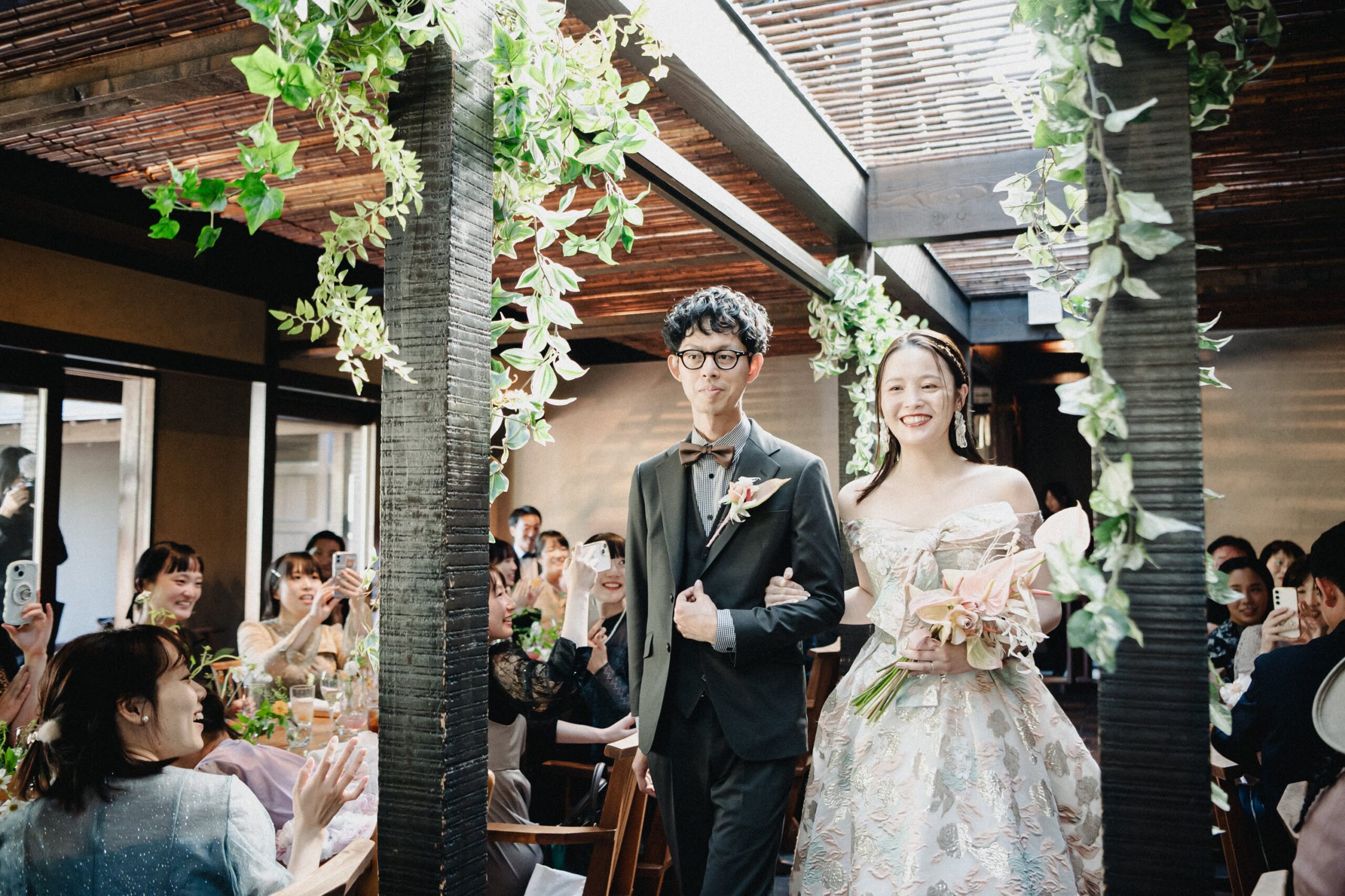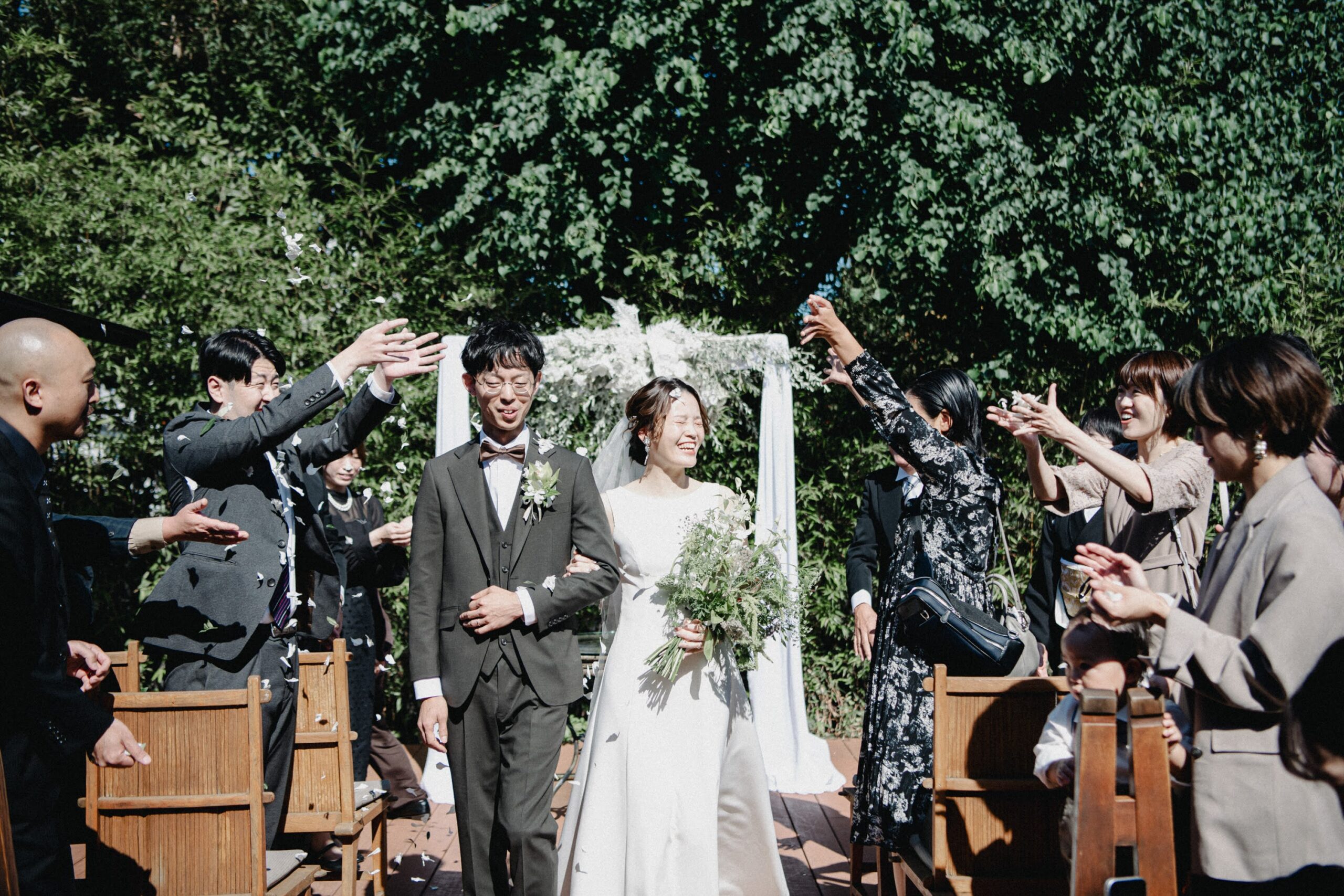 メインバンケットに隣接する中庭で、柔らかな日差しと緑に囲まれて人前式を。太陽の下、ゲストに祝福されて誓われるふたりの愛は、永遠のものとなることでしょう。