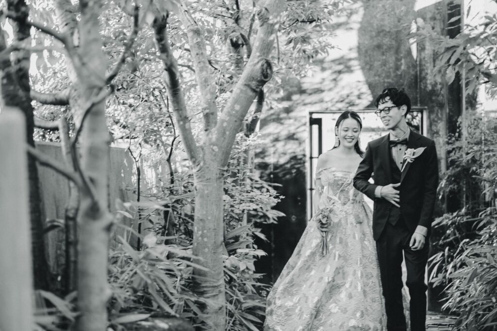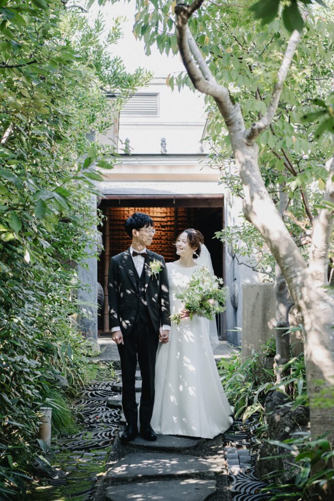 鮮やかな緑に囲まれたエントランスは物語の中の秘密の通路の様。「大人の隠れ家」へと続く明るい小路に祝福ムードも高まり、人生で最も輝かしい一日の始まりにピッタリの空間です。