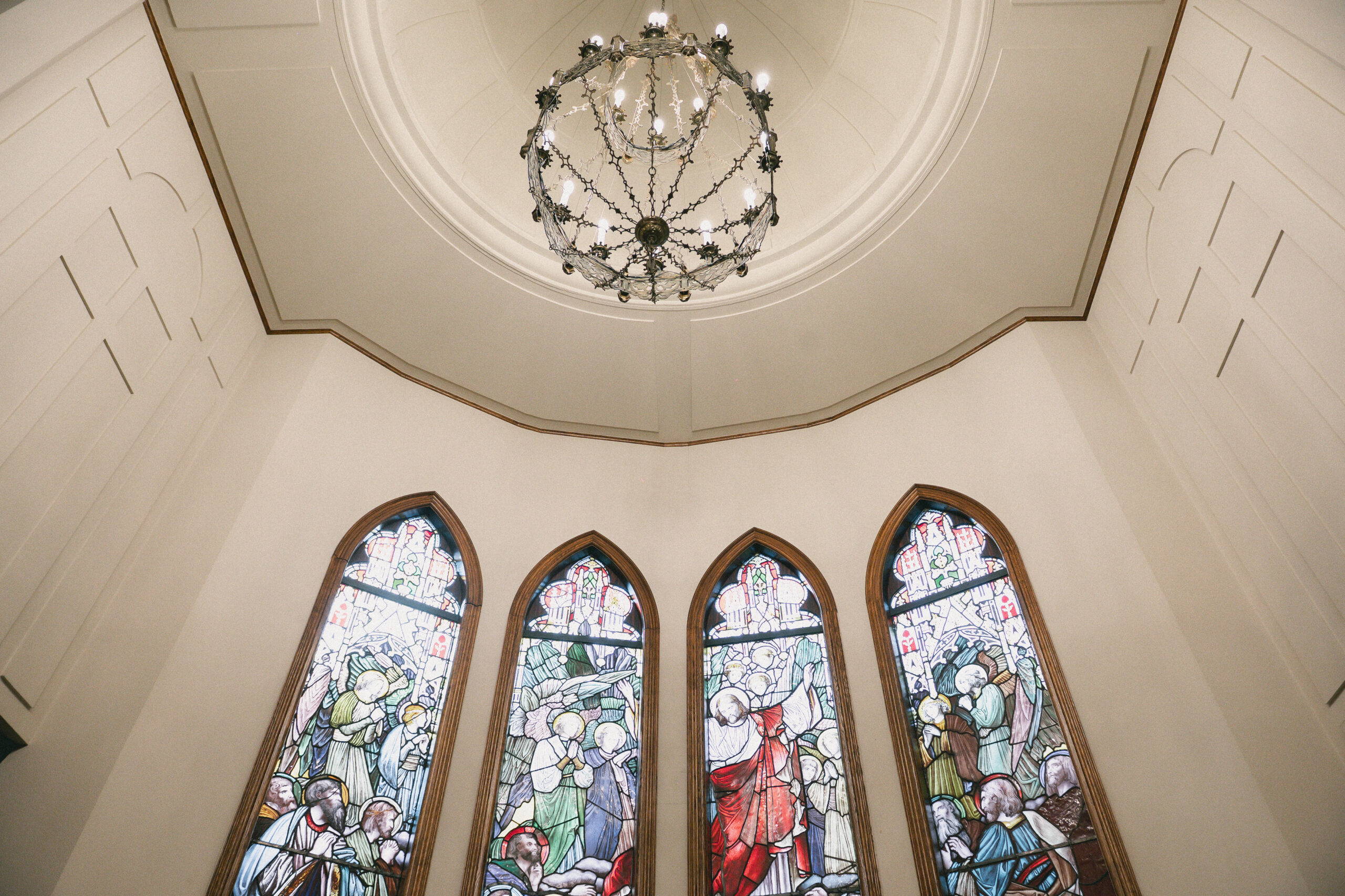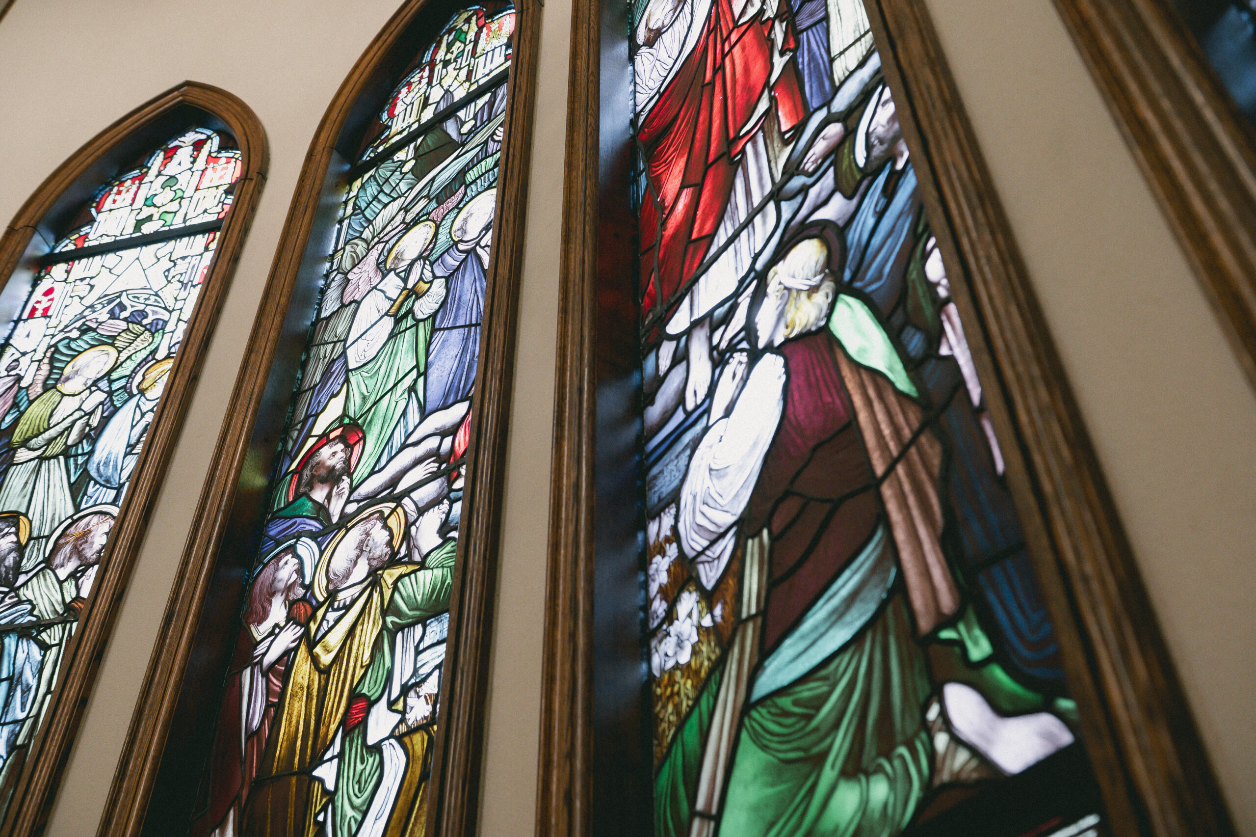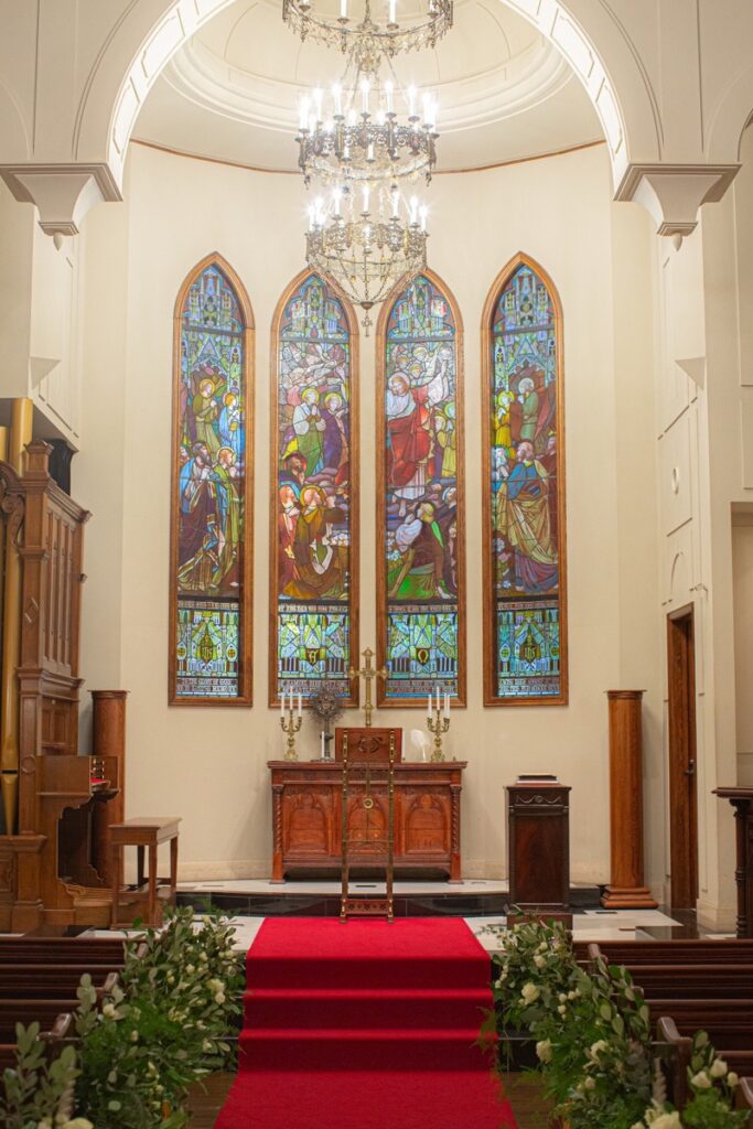 聖堂の正面に掲げられた荘厳なステンドグラスは、1895年に製造され、